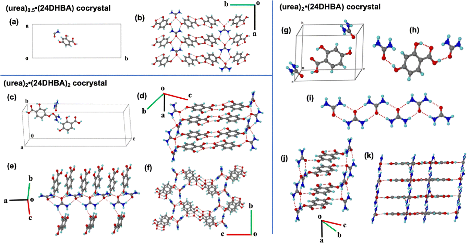 CCDC 2465561 (24DHBA), 2465562 ((urea)2·(24DHBA)) and 2465472 ((urea)2·(24DHBA)2) contain the supplementary crystallographic data for this paper.40a–c Coordinates are also available from Crystallographic Open Database (accession: 3000604, 3000605, 3000606).