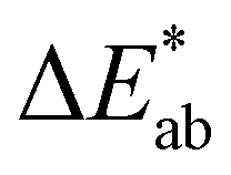 was determined by application of eqn (4) using the color coordinates of the PA1010 film as the reference:![]() | (4) |