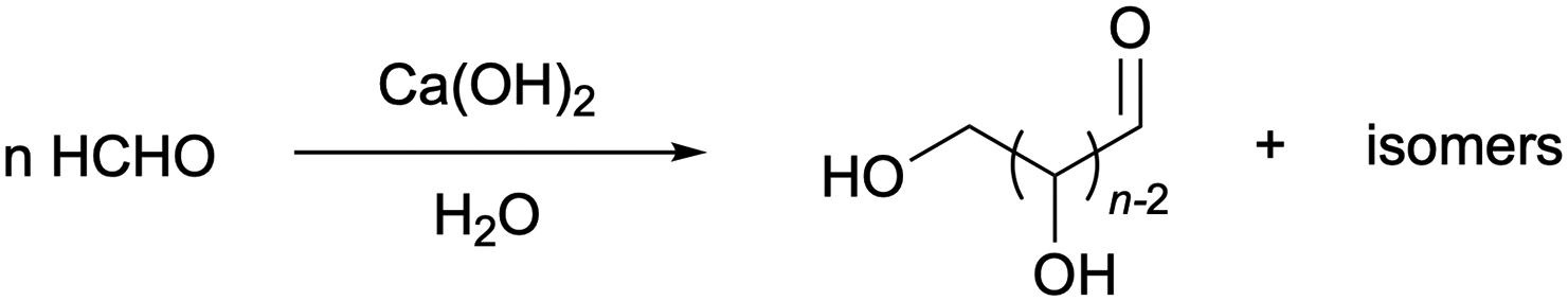 | | Scheme 1 Formose reaction, discovered by Butlerov (1861)14 and reaction pathways further clarified by Breslow (1959).12 | |
