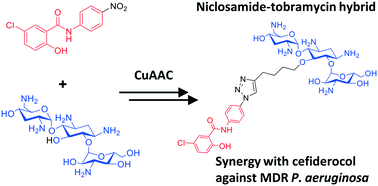 A niclosamide–tobramycin hybrid adjuvant potentiates cefiderocol against P. aeruginosa†
