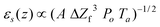 Due to the rapid decrease of the signal-to-noise ratio in the high stratosphere, it is necessary to degrade the vertical resolution of the measurement in order to limit the statistical error at this altitude range, to reasonable values. The final statistical error εs(z) on the measurement is the result of a compromise between the experimental system characteristics, the duration Ta of the measurement, and the final vertical resolution ΔZf according to the following relation, derived from eqn. (3) and the linear dependence of the lidar signals to the telescope area A, the emitted laser power Po and the vertical range over which the lidar signal is averaged: