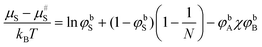Application to the three-component system is somewhat more involved. It is easy to see that the solvent term is small and we may as well take the conditions such that μS is fixed. In this case eqn (42) simplifies to