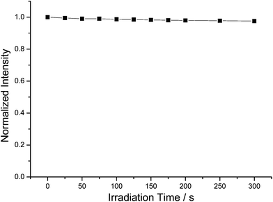 It should be pointed out that one of the advantages of rare-earth-doped luminescent nanoparticles as biological labels is their long fluorescence lifetime and stable photoluminescence features. The photostability of Eu3+-doped TbPO4 nanoparticles was investigated by means of time-sequential scanning of the cells. After 300 s of continuous illumination with a laser, no obvious change was observed in the photoluminescence intensity (Fig. 7). In fact, no photobleaching of our present Eu3+-doped TbPO4 nanoparticles was observed under further long-term illumination. These findings prove that the Eu3+-doped TbPO4 nanoparticles are highly resistant to photobleaching compared to conventional luminescent labels such as organic dyes.6 Long luminescence lifetime and high photostability are advantageous for long-time observations in biological cases.