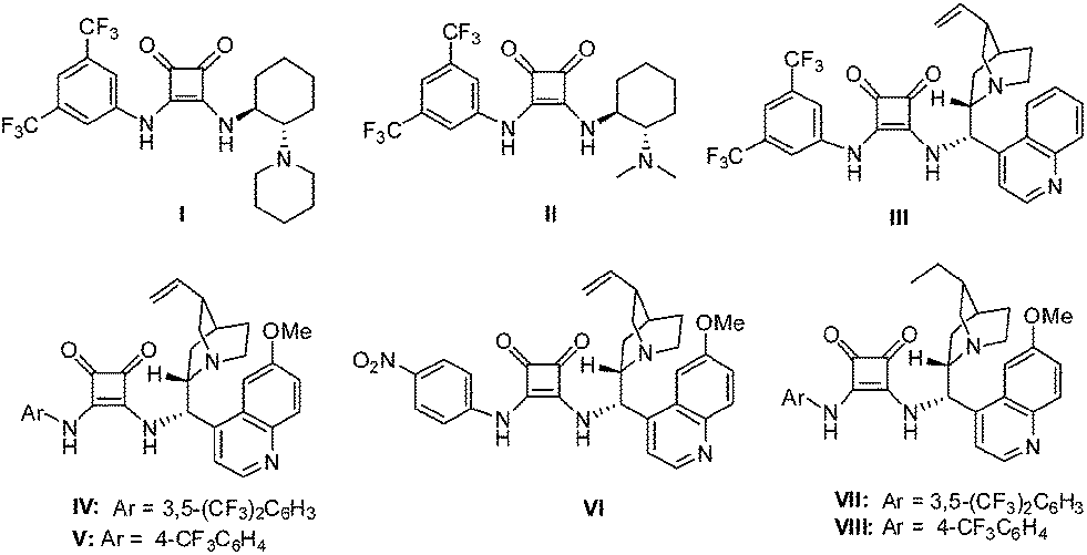 As shown in Table 1, whatever in terms of yield or enantioselectivity, the chiral squaramide catalysts I and II could only afford the desired addition product 3aa with up to 57% ee and up to 67% yield (Table 1, entries 1 and 2). A substantial increase of enantioselectivity and yield was observed by employing cinchonidine-based squaramide III as the H-bond donor (Table 1, entry 3). The reaction could afford the better results by changing the cinchonidine-derived squaramide III to its quinine and hydroquinine analogue IV–VIII (Table 1, entry 4–8). From the above evaluation, squaramide catalyst VI was identified as the best catalyst, which afforded the product 3aa in 82% yield with 83% ee.