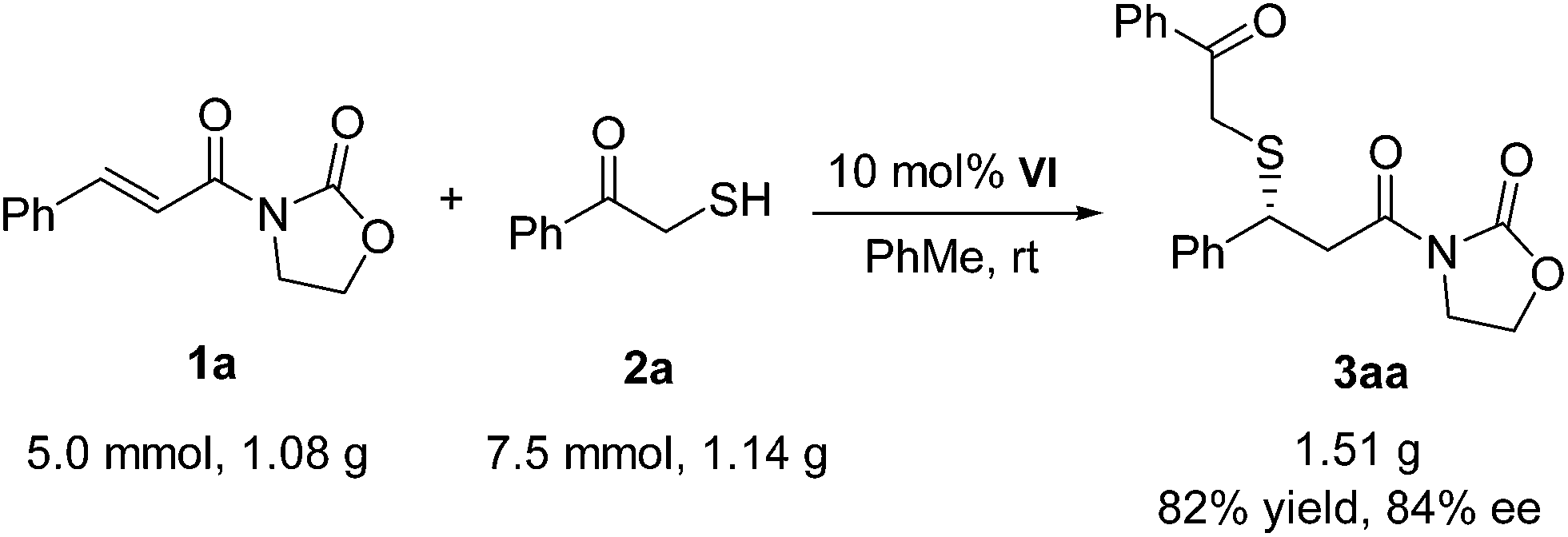 To demonstrate the synthetic potential of this methodology, a gram-scale synthesis of 3aa was performed (Scheme 2). The reaction proceeded smoothly affording the corresponding product in slightly decreased yield and stereoselectivity.