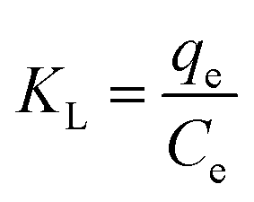 To examine the relationship between absorbed (qe) and aqueous concentration (Ce) of uranium at equilibrium, the Langmuir (eqn (3)) and Freundlich (eqn (4)) models are used to describe this adsorption process.