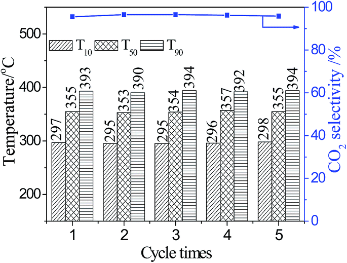 Three-dimensionally ordered macroporous (3DOM) SiO2 was synthesized by a colloidal crystal template (CCT) method, and 3DOM SiO2-supported transition metal oxides catalysts were prepared by a facile incipient-wetness impregnation method. The as-prepared catalysts show well-defined three-dimensionally ordered macroporous structures. The transition metal oxides formed different sizes of nanoparticles and loaded onto 3DOM SiO2. The as-prepared catalysts show high catalytic activities for soot combustion. Among the studied catalysts, the 3DOM MnOx/SiO2 catalyst (molar ratio of Mn to Si is 1 : 4) shows the highest catalytic activity among the studied catalysts, e.g. T10, T50 and T90 are 297, 355 and 393 °C, respectively, and SmCO2 is 95.5%. The catalytic performances of 3DOM SiO2-supported transition metal oxide catalysts are mainly controlled by three factors: the macroporous effects of the 3DOM structure, the redox properties of transition metal oxides and the sizes of transition metal oxide NPs. 3DOM SiO2-supported transition metal oxide catalysts are promising for practical applications in soot combustion owing to high activity and low cost.