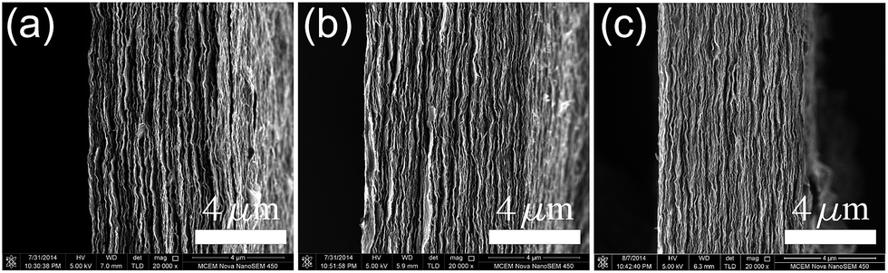The recent advance of rGO synthesis techniques show that the oxygen content in rGO sheets can be well controlled by using different amounts of reduction agent in the synthesis process without any additional post treatment steps.25,26 He et al. found that at a weight ratio of hydrazine over graphene oxide (GO) Rw > 0.2, fine tuning of the rGO molecular structures can be achieved without causing any major disruptions to the integrity of the rGO sheets. This method can promote uniformity and integrity of the obtained rGO papers in comparison with those fabricated using the post treatment processes.