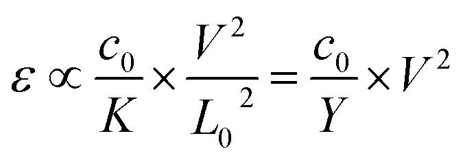 In eqn (1), t1 and t2 are the thickness of the rGO paper layer and the SU8+epoxy layer, respectively, E1 and E2 are their Young's modulus, and L0 (15 mm) is the initial length of the cantilever. The value of t1 is 5 μm for the dry rGO papers and 150 μm for the hydrogel papers while their t2 values are ∼85 μm and ∼70 μm respectively. The Young's modulus of SU8 is 2 GPa (MICROCHEM, SU8 2000) and that of epoxy is 500 MPa (ref. 39) (Selleys, Aqua Repair). The E2 is calculated as the averaged Young's modulus of SU8 and epoxy layer based on their thickness: ∼1 GPa. Note that eqn (1) is widely used in micro/nano devices community, e.g., Al/SiO2, W/SiO2, Al/Si, Ni/Ni-diamond, SiO2/Ti bimorph beams.8,38,40