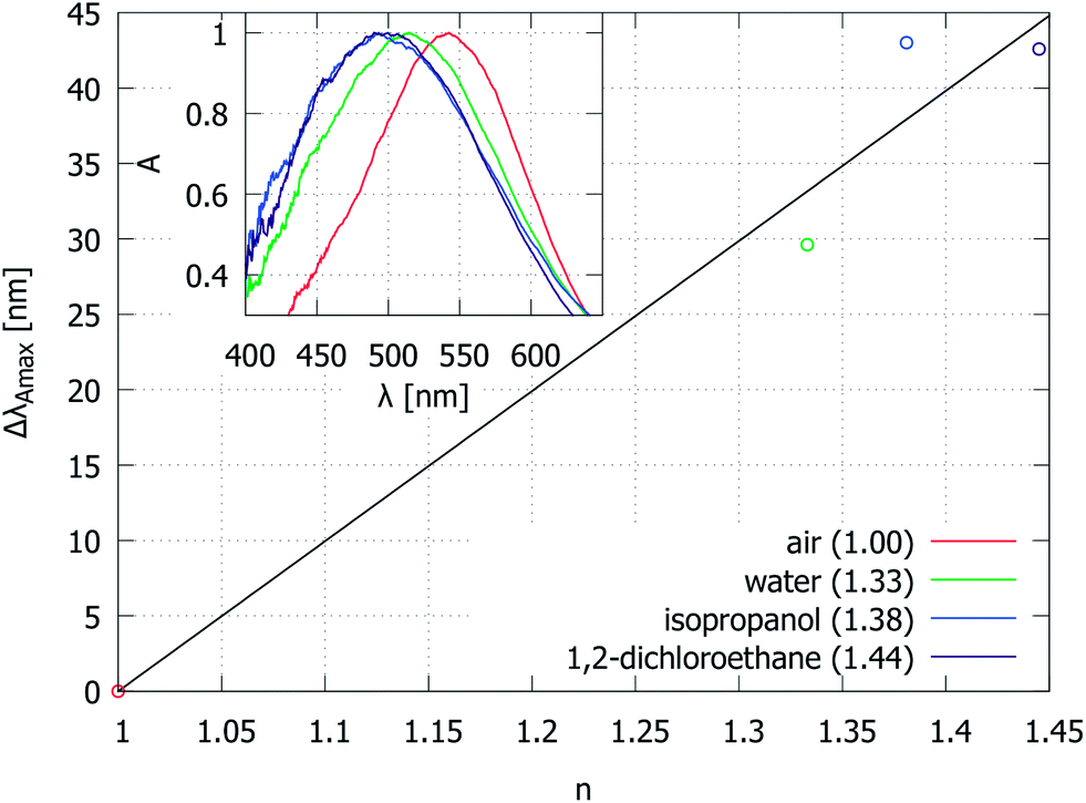 Finally, we demonstrate the variation of the reflection attenuation spectra when Au–AAO–Al systems are immersed in liquids with different refractive indexes (Fig. 11). There is a considerable scatter in the measured dλAmax/dn data, which is likely caused by pore filling with air and sample heating. For sensor applications, one would need to develop a precise control of whether the liquid modifies the AAO pore refractive index, interacts with voids in the metal layer or changes the refractive index of the surrounding medium, n0.