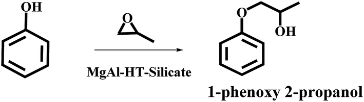 The silicate stabilized MgAl-HT was utilized for preparation of 1-phenoxy 2-propanol (Scheme 12) and the results are reproduced in Fig. 2. The authors found that silicate intercalated MgAl-HT (50%) yielded better conversion than pure MgAl-HT (7%); the observed higher conversion was explained based on the higher surface area and more exposed active species.