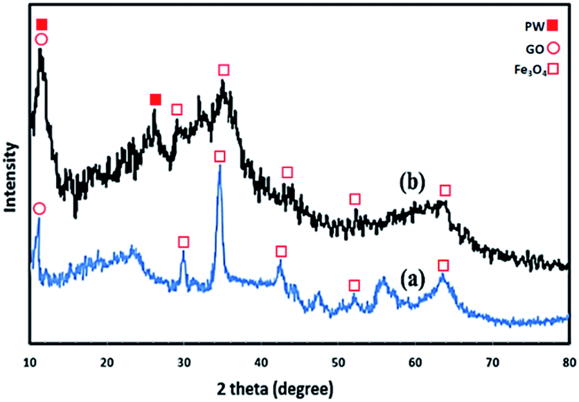 | | Fig. 5 XRD patterns of (a) Fe3O4/GO and (b) Fe3O4/GO/PW. | |