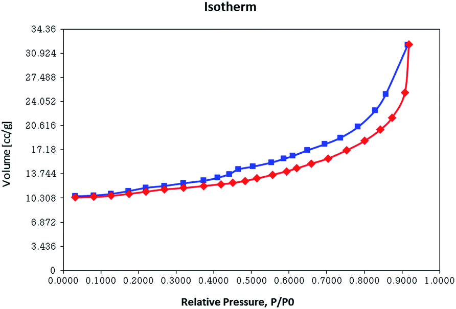 | | Fig. 6 N2 adsorption–desorption isotherm and of Fe3O4/GO/PW. | |
