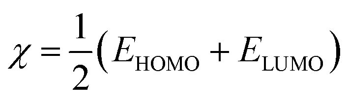 2.2.5. Quantum chemical calculations. The quantum chemical studies in the present work were carried out by using similar computational approach employed in some previous studies.18,19 Quantum chemical calculations were carried out on the studied compounds in order to provide corroborative explanations for the inhibition activities of the DHPCs at molecular level. The optimized structures and electronic energy parameters were obtained by using the B3LYP/6-31G(d) model20–22 of the density functional theory (DFT) method. The optimized structures were confirmed to correspond to true energy minima by the absence of an imaginary frequency in the force constant calculations. All the quantum chemical parameters used in providing theoretical explanations for the corrosion inhibition properties of the studied compounds are those of the most stable ground state geometries. Quantum chemical calculations were carried out with the aid of Gaussian 09 suite software.23 The energy of the highest occupied molecular orbital (EHOMO), the energy of the lowest unoccupied molecular orbital (ELUMO), the energy band gap (ΔE = ELUMO − EHOMO), and the dipole moment of the optimized structures were obtained and recorded. The absolute electronegativity (χ) of the inhibitor molecule was calculated using the equations:19,20| |