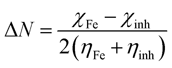 The fraction of electrons transferred from the inhibitor molecule to the metal, (ΔN) was calculated according to the equation:19,24