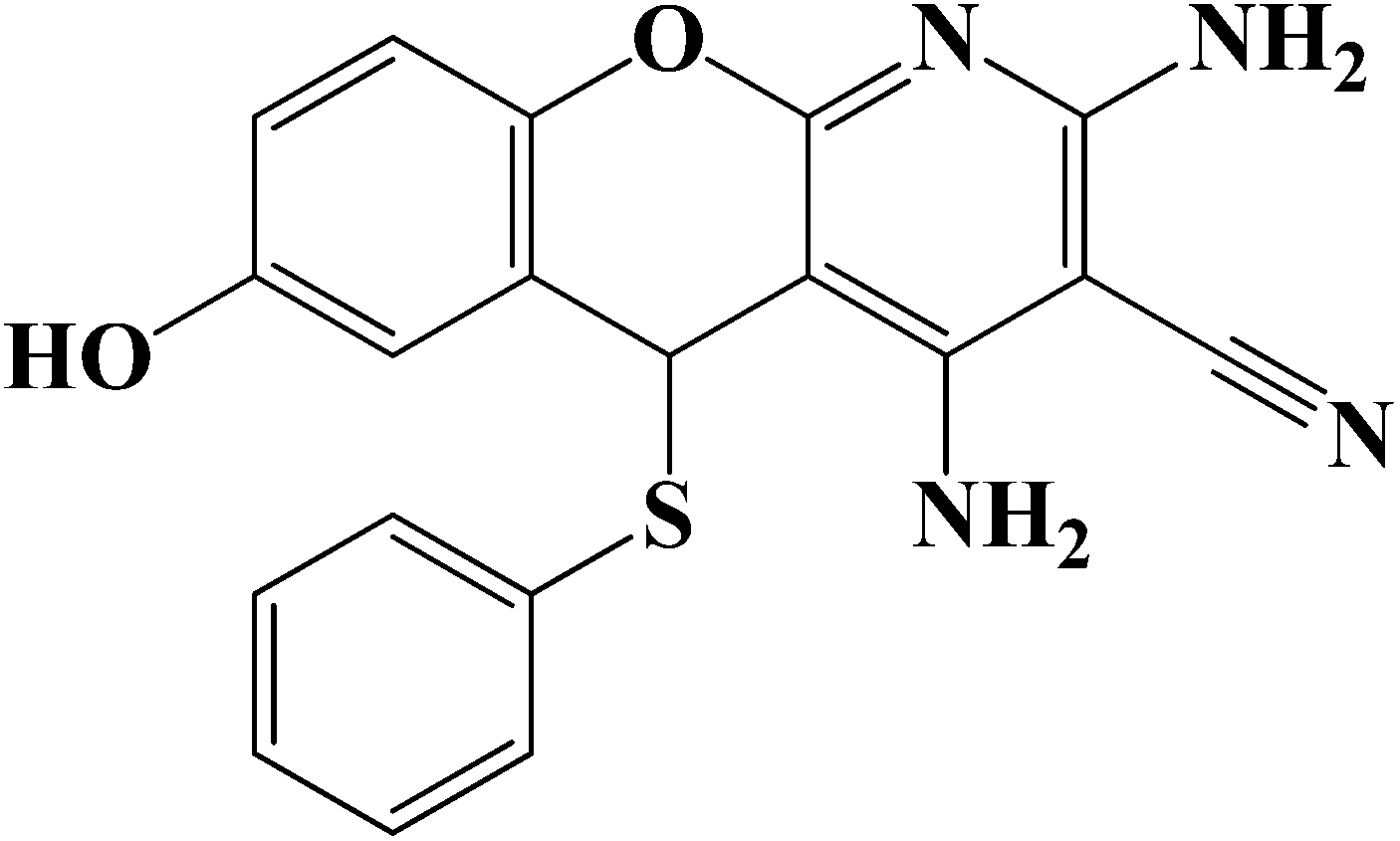 2,4-Diamino-5-(phenylthio)-5H-chromeno [2,3-b] pyridine-3-carbonitrile (DHPC-2) |