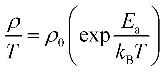 The transport mechanism of dual-substituted CaMn1−xNbx/2Tax/2O3 can be well understood according to Mott's adiabatic small polaron conduction model that describes the linear fit of ρ(T) curve. In this framework, ρ(T) shows linear relationship with the inverse of temperature and expressed as:49,50