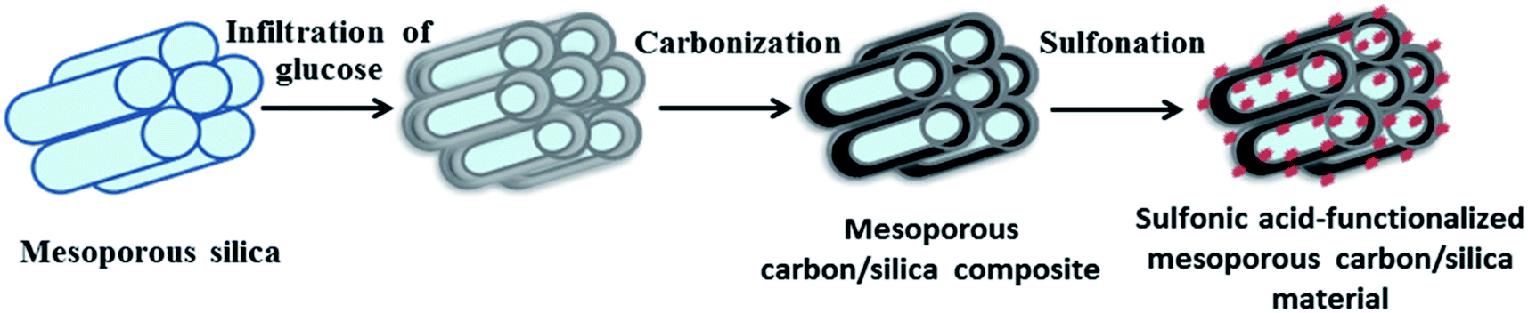 | | Scheme 1 Schematic diagram showing the preparation process of sulfonic acid-functionalized mesoporous carbon/silica. | |