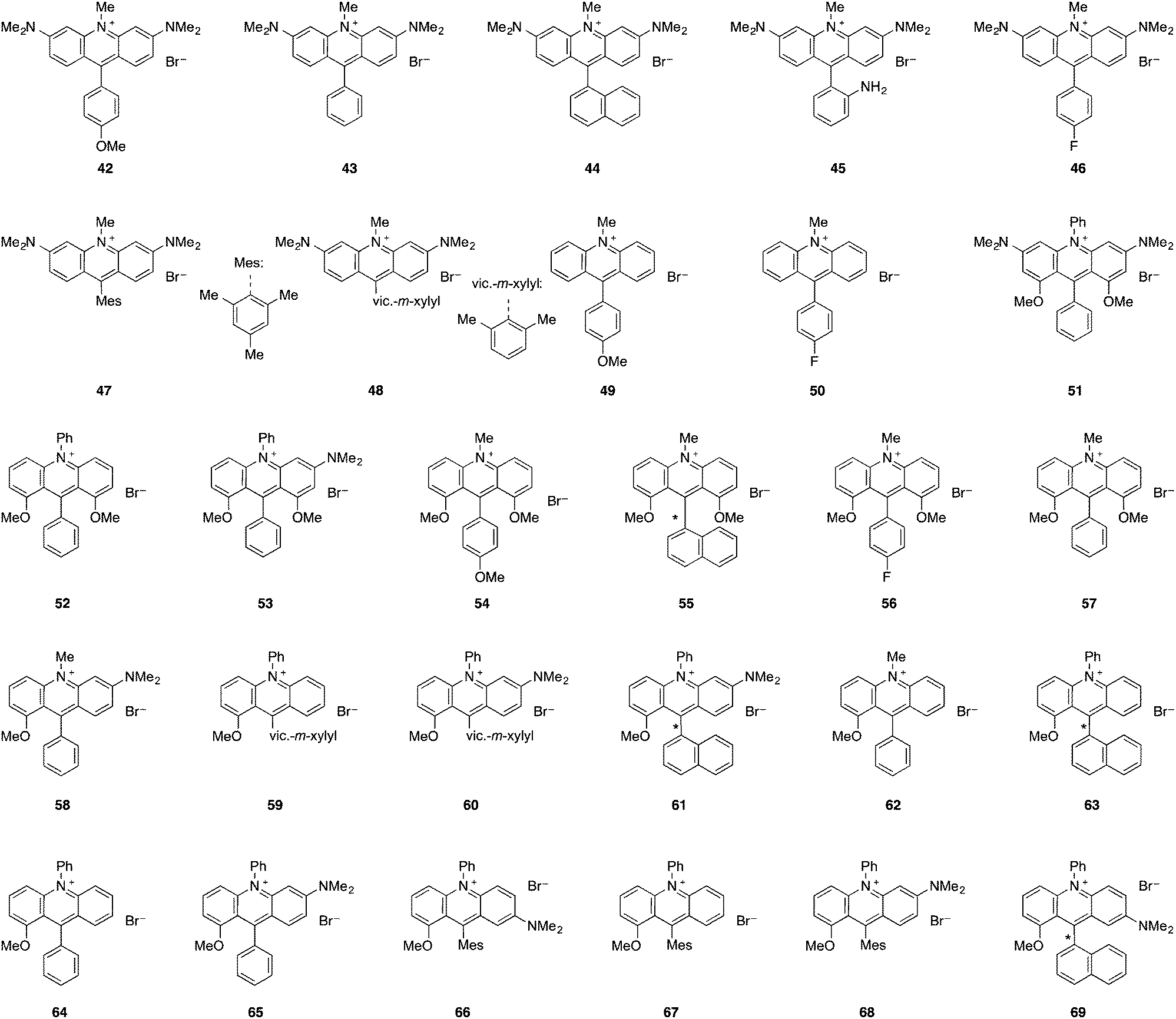 An entirely modular synthetic strategy for asymmetric acridinium salts was envisaged based on a combination of directed ortho-metalation (DoM) and halogen metal exchange (X–M) processes (Scheme 19). With this strategy, a broad panel of acridinium salts was obtained with various substitution patterns.45