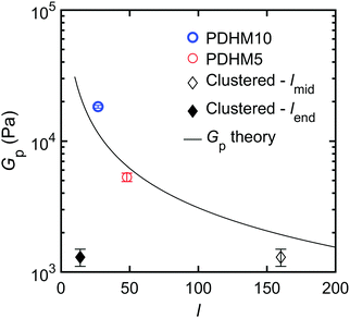 The plateau modulus, Gp is a measure of the concentration of elastically active strands, and the trend observed for Gp can be explained by considering the relation between Gp and the average spacing between crosslinks, l under the affine network assumption. For gels prepared at a concentration of ϕ (volume fraction),