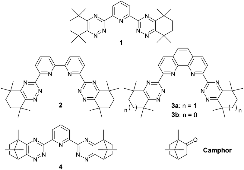 To accomplish this, a solvent extraction process is required that can extract the minor actinides from nitric acid solution and separate them from the chemically similar, less-radiotoxic lanthanide fission products prior to their burn-up in advanced reactors or accelerator-driven systems.5 Many soft N- and S-donor ligands that can discriminate between the more extended 5f orbitals of the actinides and the more contracted 4f orbitals of the lanthanides have been evaluated for this separation.6,7 Bis-1,2,4-triazine ligands such as 1–3 (Fig. 1) fulfil many of the challenging criteria for use in such a separation process, and are among the current N-donor ligands of choice for further development.8