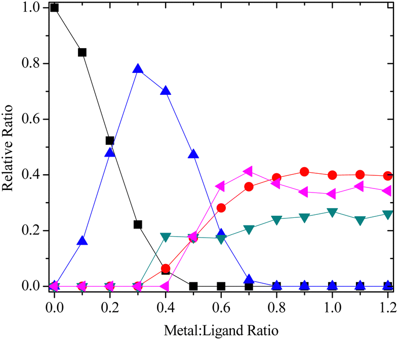 Interestingly, examination of the aromatic region of the 1H NMR spectra at the end of the titrations of 12 and 14 with each metal revealed the presence of three additional complex species, instead of the one additional species expected for the neutral 1