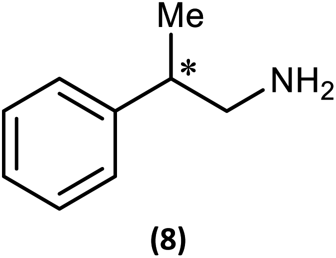 (iv) There is a noticeably strong correlation between the PO chemical shift and the absolute configuration for the eleven α-amines explored (i.e.5, 6, 9–17). With the exception of 13 (where δS ≈ δR), the PO chemical shift of the S-isomer is always higher than for the R-isomer (δS > δR). It can be noted that the β-amine 2-phenylpropylamine (8) does not fit the trend. In contrast, the PN resonances do not exhibit any such clear correlation; 5, 8, 9, 11, 12, 13 have higher PN chemical shifts for the R-isomer (δR > δS) whereas the opposite holds for 6, 14, 15, 16, 17 (δS > δR), and only for 10δS ≈ δR.