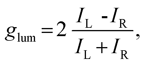 The largest values of glum are generally observed for chiral lanthanide complexes.3 The luminescence from these species is however composed of several sharp lines, not all of which are CPL-active or possess the same CPL sign. In contrast, organic chromophores display a broader mono-signate emission that is more suitable for some applications, but with glum values that are frequently ≤ 10−3.3,4 The relationship between various chiral groups, emission quantum yield (ΦPL) and glum for organic chromophores was nicely reviewed by Mori and co-workers.5