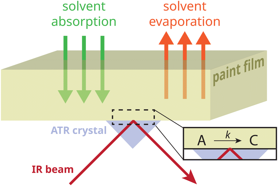 One important conservation question concerns the possibility of detrimental effects of solvent exposure during conservation treatments, like varnish removal, surface cleaning, paint consolidation and lining.1 In a fully dried paint, most chemical reactions in the polymer network tend to be diffusion-limited and, as a consequence, rather slow. This situation can lead to the establishment of local environments with varying molecular composition and physical conditions near, for instance, pigment interfaces or the paint surface. When solvents diffuse into paint layers, they usually cause considerable polymer swelling,2,3 which has the potential to solubilize and transport reactive molecules,4–6 trigger undesirable reactions, and cause a rapid change in the properties of paint layers.