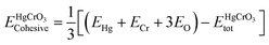 refers to the total energy of the unit cell, EHg, ECr, 3EO are the total energies of the corresponding elements in their free state of isolated atoms. The computed cohesive energy is 3.05 ev per atom suggesting the chemical stability of the investigated compound. Furthermore formation energy is computed as| |