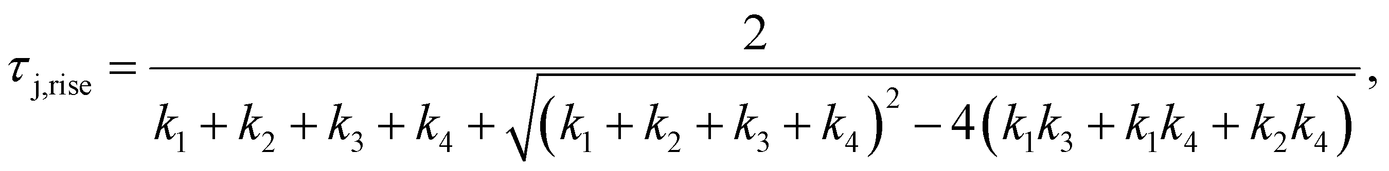 τdecay are characteristic time constants that determine the speed of the rise or decay of the measured quantity respectively, hereafter referred to as rise and decay time constants. Δ