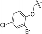 3.1.3. Synthesis of ester from 2-bromo-4-chlorophenol. A solution of 2-Br-4-Cl-phenol (1 mmol) and potassium carbonate (1.2 mmol), methyl/ethyl chloroacetate (1.5 mmol) in DMF was stirred and subjected to heat at 95 °C for 4–6 h. Upon reaction completion, excess of DMF was evaporated and the solvent extraction of unrefined product was carried out with ethyl acetate (3 times), followed by washing of organic layer with water. The washed organic layer was then dried over Na2SO4 (anhydrous) which was subjected to purification by column chromatography using n-hexane/EtOAc.36,38,39,44,45