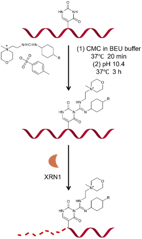 | Fig. 1 Schematic illustrating the principle of CMC labeling and XRN1 exonuclease digestion. | |
