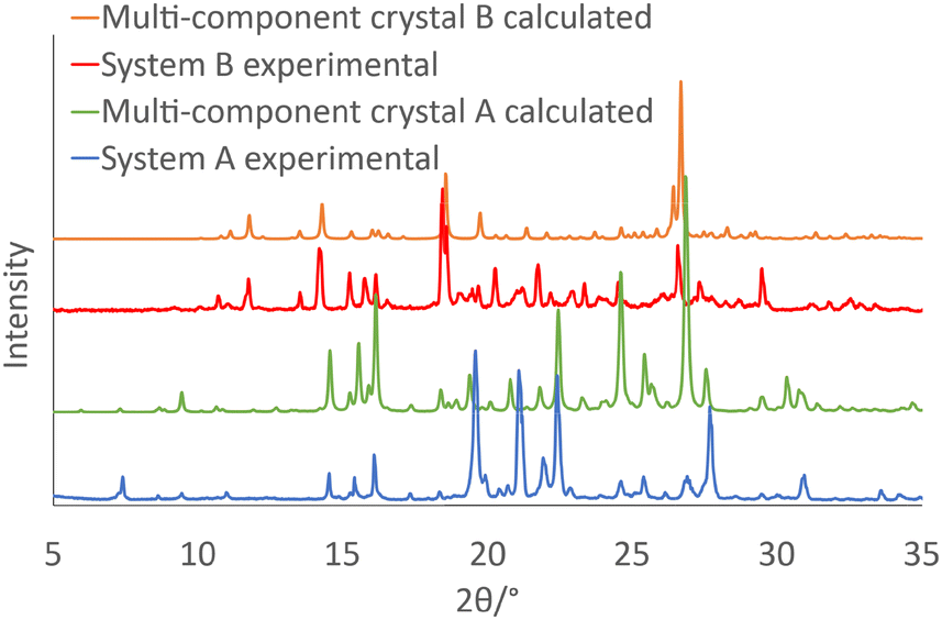1 sublimation at 180 °C for system B, in which we obtained yellow crystals, shown by PXRD and single-crystal X-ray diffraction to be the ternary multicomponent material B (Fig. 1).