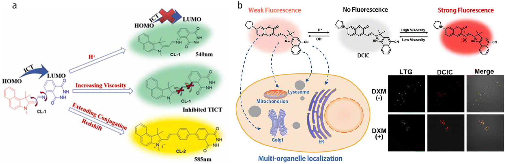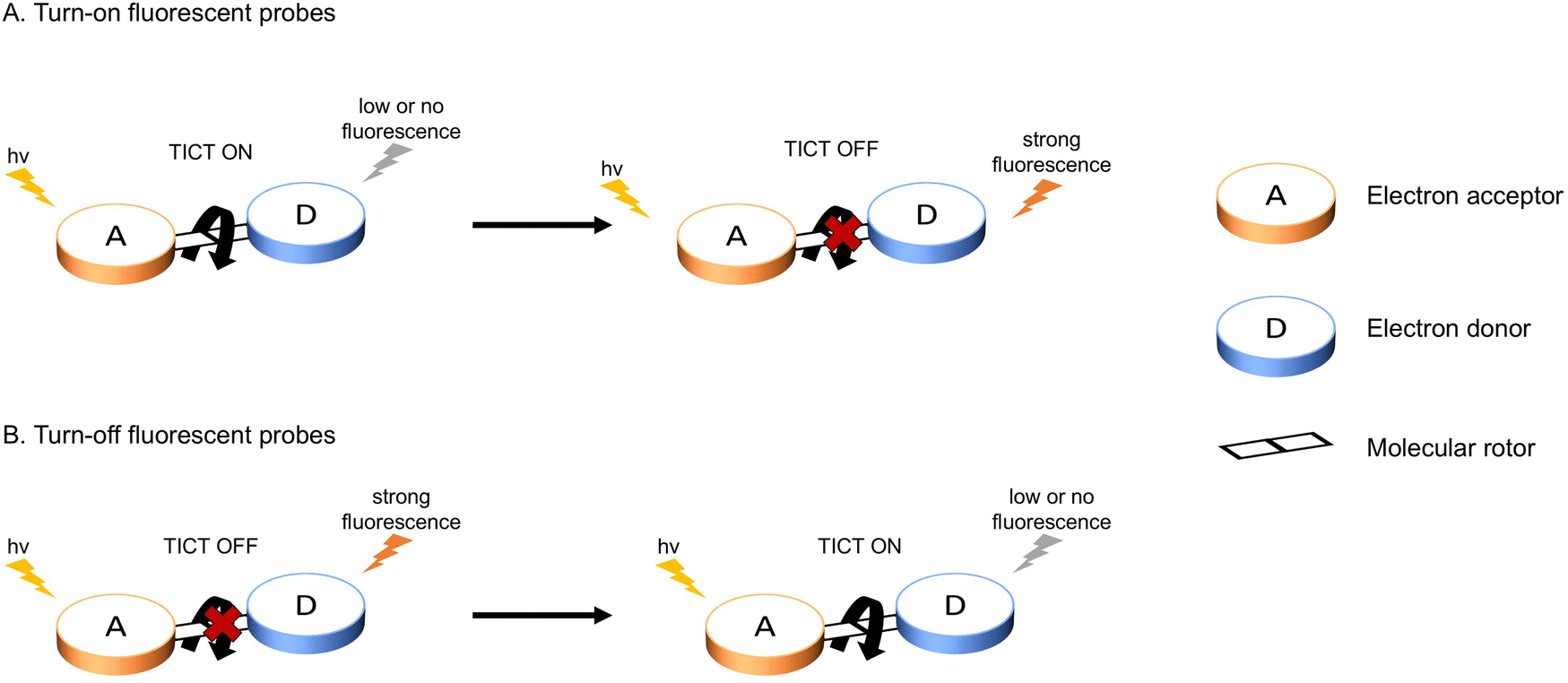 This review discusses recent advances in the development of fluorescent probes based on TICT. We focus on probes designed to detect important species in the environment or biological context. We discuss their main working mechanisms and limitations. In addition, we provide our own perspective on these probes. Finally, the current challenges and future opportunities for the development of TICT-based fluorescent probes are outlined.