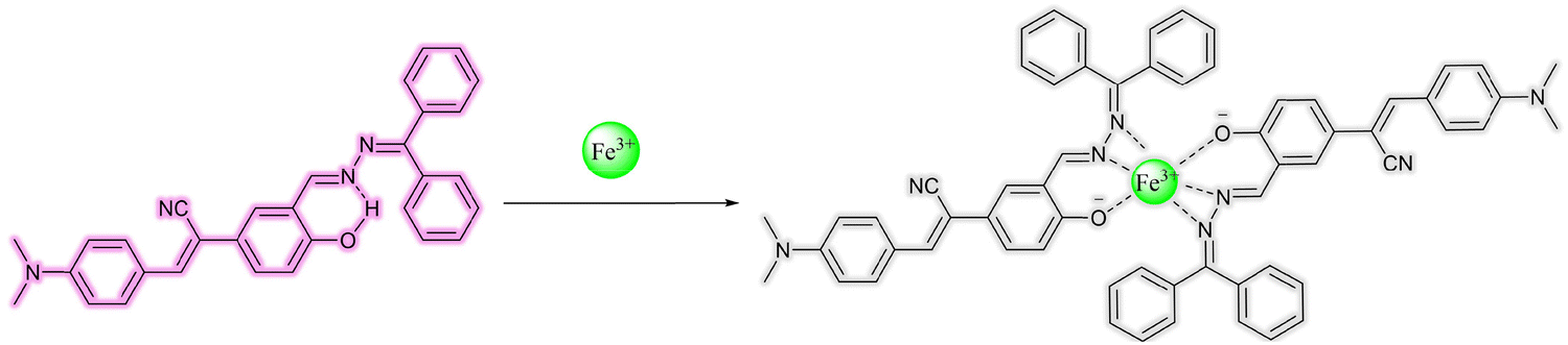 | Fig. 11 The proposed mechanism of 3a–b and 5a–b with Fe3+ (R = H, CH3). Image adapted with permission from ref. 65. Copyright 2024, Elsevier. | ||
