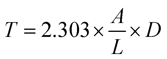 The emulsifying activity index (EAI) of extracted protein and the emulsion stability index (ESI) of protein emulsions were determined by using a turbidimetric method.13,14 Freshly prepared emulsions were diluted 100 times with 0.1% (w/v) sodium dodecyl sulphate (SDS) and mixed for 1 minute using a vortex mixer. The absorbance of these diluted emulsions in quartz cuvettes with a path length of 0.01 m was measured at 500 nm wavelength using a UV/Vis Spectrophotometer (Lambda 365, PerkinElmer Inc., USA). The turbidity of the emulsion will be calculated using eqn (5).| |  | (5) |