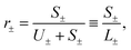 which measure the relative percentage of saturated phospholipids S± among all phospholipids L± = U± + S±. States of constant r± form lines that pass through the cholesterol corner and divide the opposite us-side at the respective ratio of s-lipids. Second, to single out a point on that line, we may specify its cholesterol mole fraction, which we will henceforth denote with the symbol ϕ±. These coordinates are illustrated in Fig. 3. Since both Gibbs triangles parametrize two-dimensional phase spaces, the total problem appears to have 4 degrees of freedom.