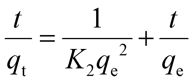 The kinetics of mercury removal from water was also evaluated. Different kinetic models have been developed to describe the kinetics of heavy metal removal.41–43 In this case, the data are better fitted to the pseudo-second order model, expressed as: