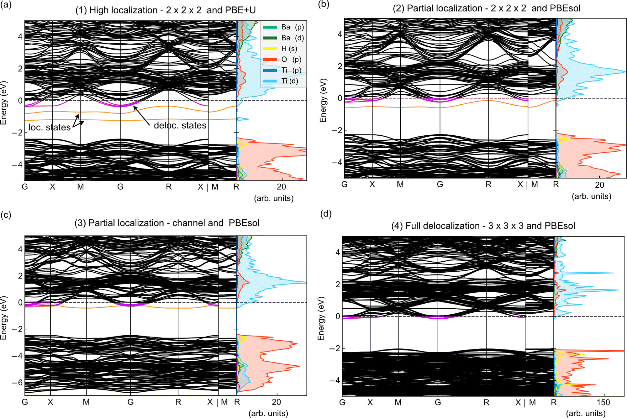 | (3) Partial localization | Channel + PBEsol | BaTiO2.75H0.125□0.125 |