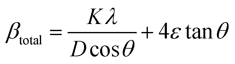 is the intercept. In eqn (4), βtotal is the full width at half maximum (FWHM) in radians, λ is the X-ray wavelength (0.81262 Å), K is the shape factor (assumed to be 0.9), D is the crystallite size, and ε is the microstrain.