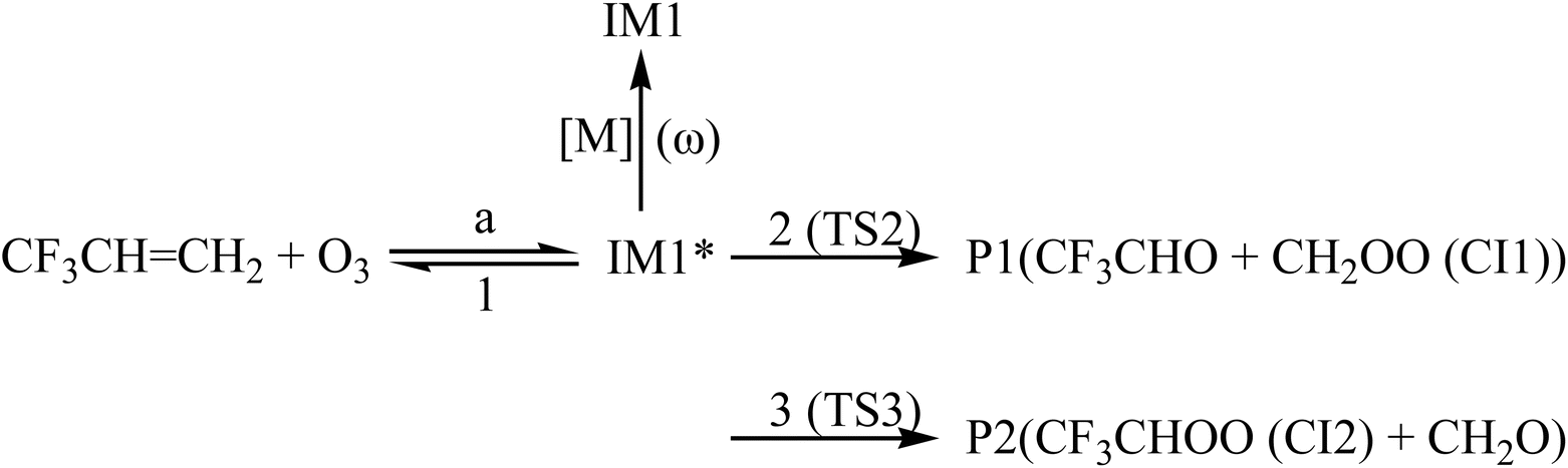 | | Fig. 1 Optimized geometries and reaction schematic of the trifluoropropene (CF3CH CH2) with ozone reaction. | |