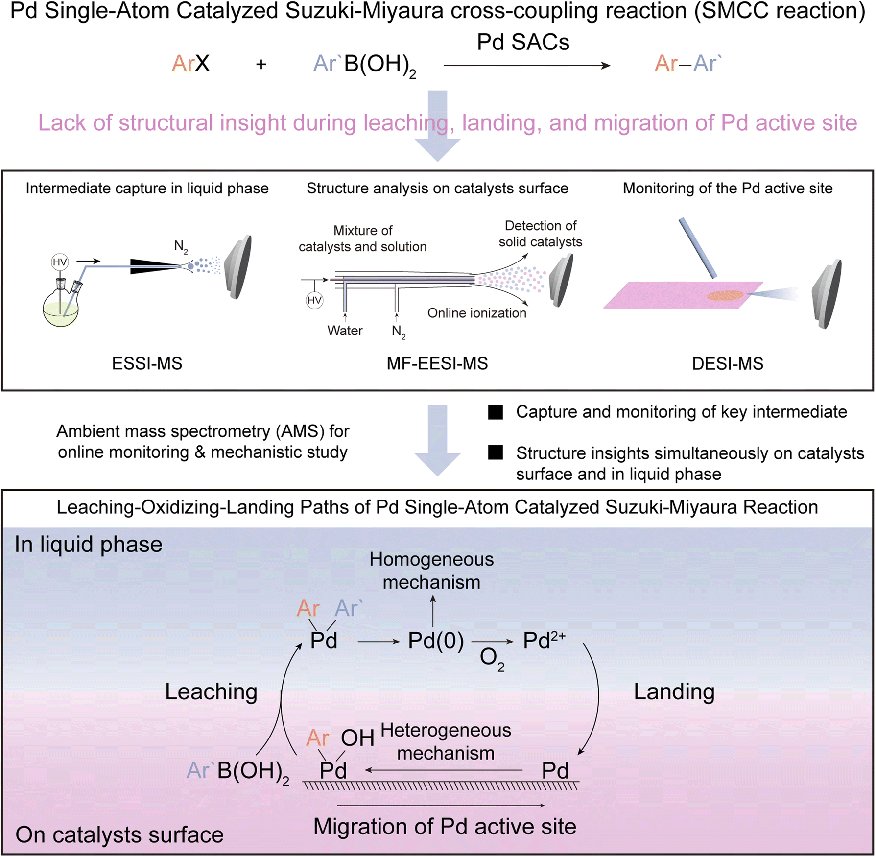 Unveiling leaching–oxidizing–landing paths of Pd single-atom catalyzed Suzuki–Miyaura reaction by ambient mass spectrometry