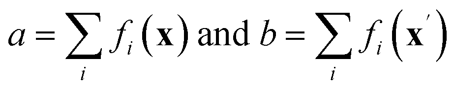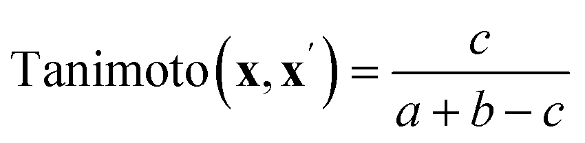 is the number of bits shared by both fingerprints. Here, f(x) denotes the Morgan fingerprint of molecule x; the Tanimoto similarity measures the overlap between the binary features of two molecules.