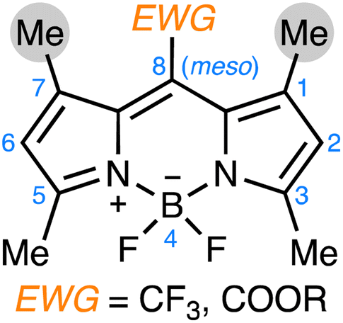In 2014, we reported the structural characterization of a meso-trifluoromethyl 1,3,5,7-tetramethyl BODIPY dye (CF3-BODIPY) that featured photophysical properties fully consistent with emissive exciton-coupled J-aggregates (Fig. 1, https://doi.org/10.1039/c3sc52495g).7