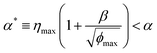 Next, consider the 2nd case where α > ηmax. For this case, the RHS of (22), when plotted against T, reaches ϕmax at some time Tmax(α), i.e., this occurs when