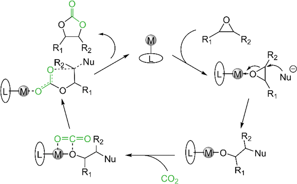 | Scheme 10 General proposed mechanism for the cycloaddition of CO2 and epoxides to cyclic carbonates. | ||
