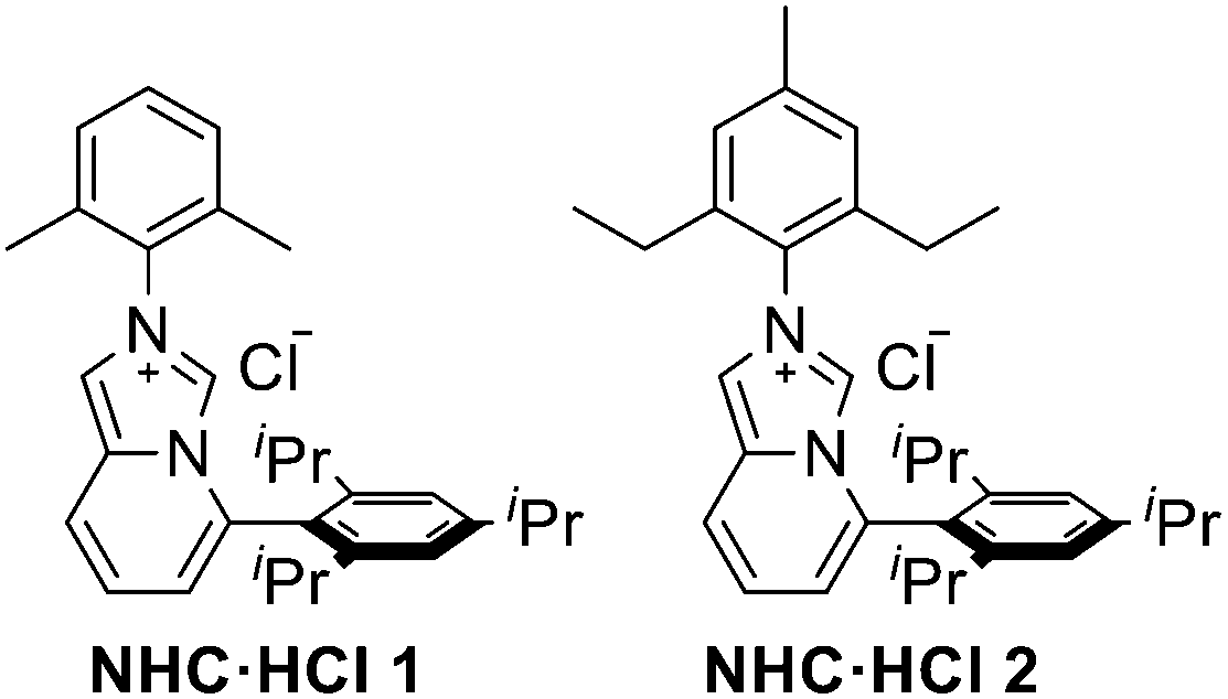 | 14 | NHC·HCl 1 | K3PO4 | PhCF3 | 35 |