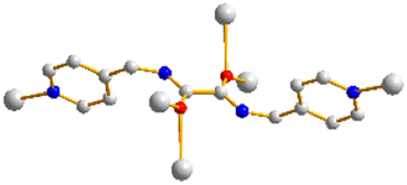 Preparation of [Ag(1,2,4,5-H2BTEC)0.5(L1)0.5]n, 3. Complex 3 was prepared by following similar procedures to 1, except that Ag(CH3COO)·H2O (0.017 g, 0.10 mmol), L1 (0.027 g, 0.10 mmol) and 1,2,4,5-H4BTEC (0.0210 g, 0.10 mmol) were used. Colorless crystals were obtained. Yield: 0.026 g (70%). Anal. calcd for C12H9N2O5Ag (MW = 369.08): C, 39.05; H, 2.46; N, 7.59%. Found: C, 39.32; H, 2.21; N, 7.98%. FT-IR (cm−1): 3914(m), 3884(w), 3786(m), 3641(w), 3590(w), 3258(w), 3048(m), 3015(m), 2816(s), 2744(s), 2054(w), 1127(s), 953(s).