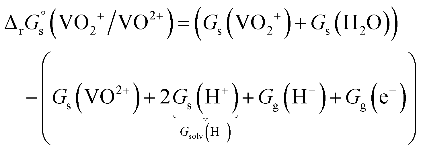 , for each vanadium redox pair in aqueous solution (with implicit solvation) as follows:![]() | (1) |